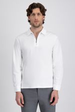 Polo de manga larga con medio cierre y algodón mercerizado, ideal para un estilo casual moderno con detalles elegantes y ajuste contemporáneo.