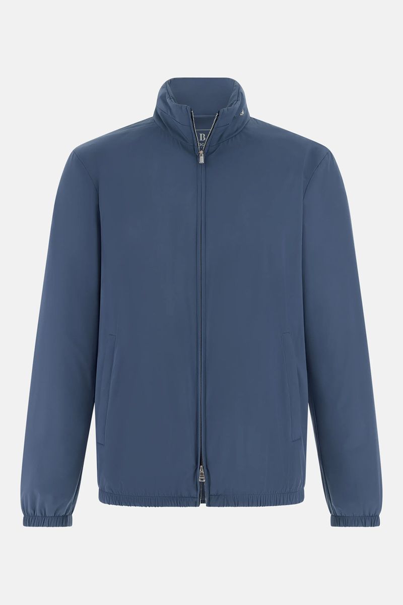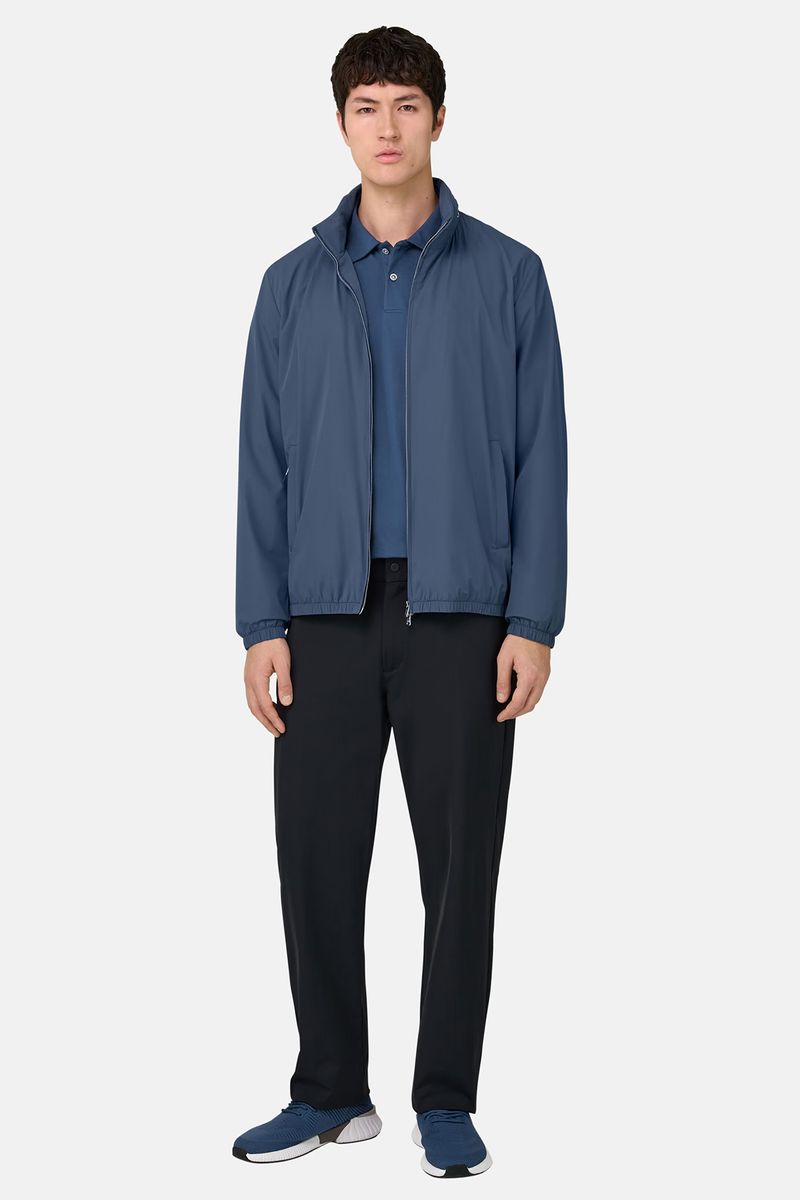 Bomber de tejido técnico. El tejido es un material técnico especial ultraligero, pero al mismo tiempo repelente al agua y resistente a las arrugas. Este modelo cuenta con forro de material técnico, cierre de cremallera y bolsillos internos con cremallera.