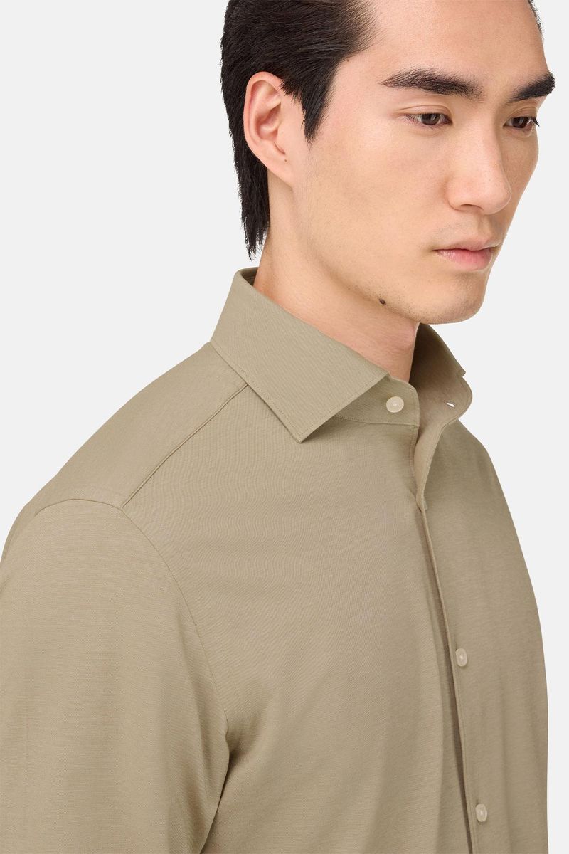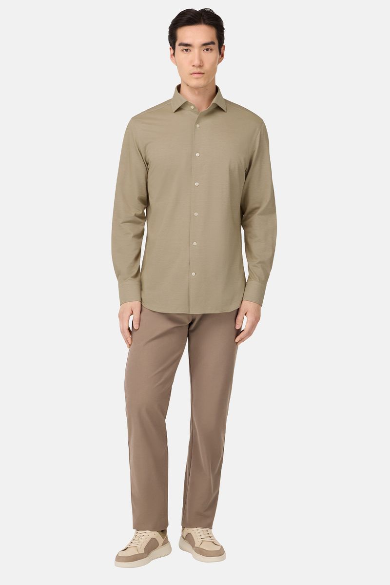 La composición y la particular estructura del tejido garantizan una alta resistencia a las arrugas, máxima comodidad, elevada transpirabilidad y fácil mantenimiento.