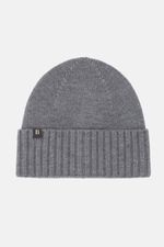 Un cálido gorro de punto en tejido 100% lana color gris.