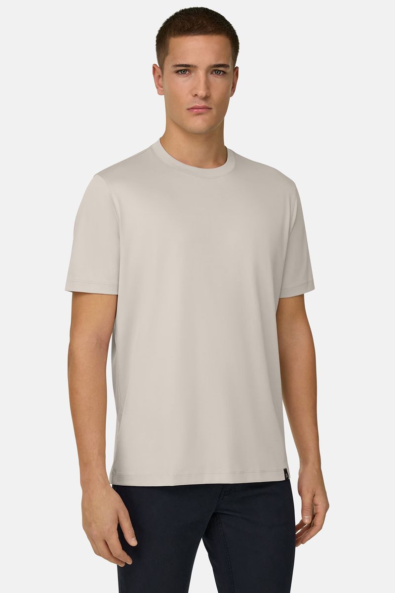 Camiseta de punto jersey de algodón, poliéster y seda. Este modelo presenta B de Boggi Milano en la parte inferior izquierda de la prenda.