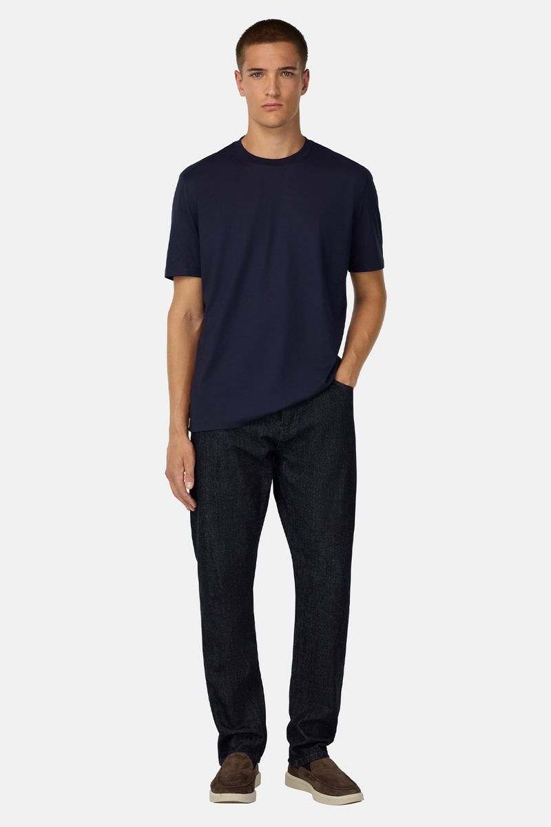 Modelo con talla M y una estatura de 185 cm con, contorno de pecho de 98 cm, contorno de cintura de 76 cm y contorno de cadera de 98 cm.