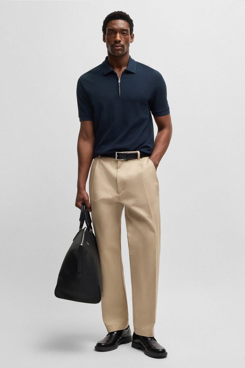 Polo De Punto Con Cuello Con Cremallera Y Estructura De Rejilla