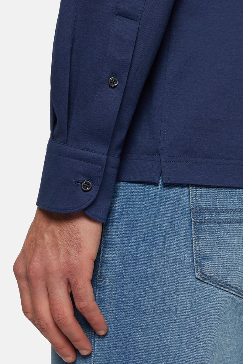 Confeccionado en punto jersey japonés de algodón y poliéster, este polo ofrece alta resistencia a las arrugas, máxima comodidad y elevada transpirabilidad. Su fácil mantenimiento lo convierte en una opción ideal para el día a día, con un toque distintivo: la B de Boggi en la parte inferior izquierda.