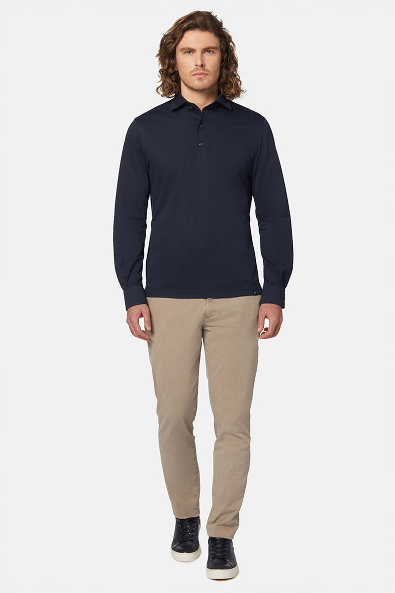 Este polo, confeccionado en punto jersey japonés de algodón y poliéster, ofrece alta resistencia a las arrugas, máxima comodidad, y elevada transpirabilidad. Ideal para el día a día, con la distintiva B de Boggi en la parte inferior izquierda para un toque de sofisticación.