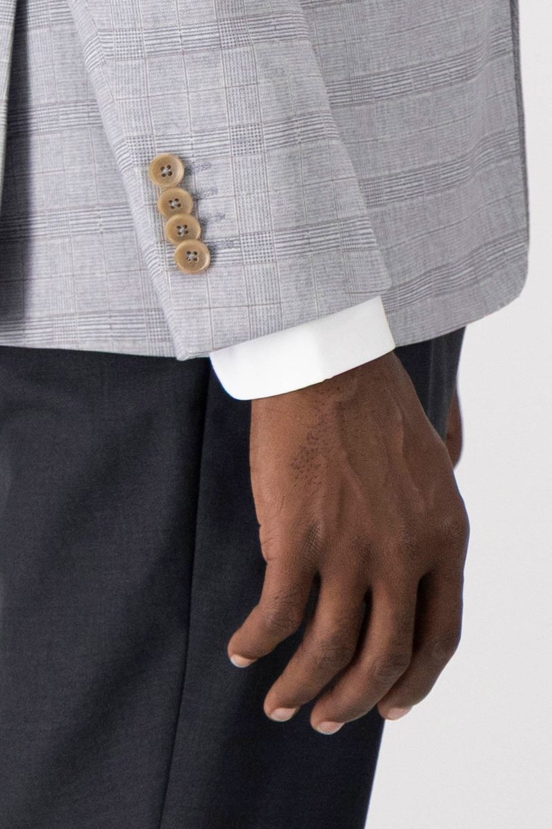 Saco slim fit con solapa pico de High Life. Diseño elegante y responsable con mezcla de fibras recicladas. Sofisticación con impacto positivo.