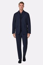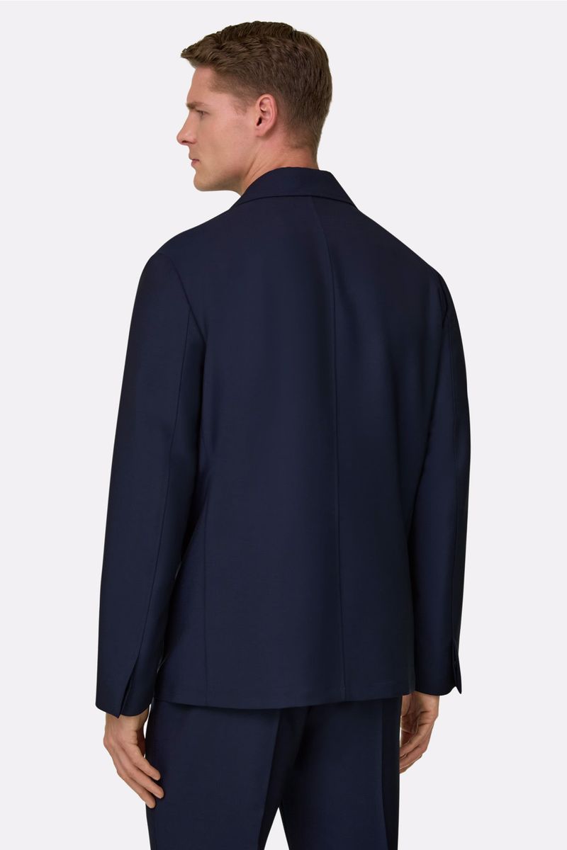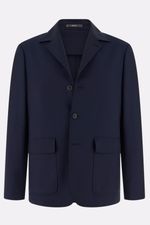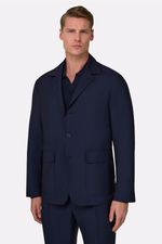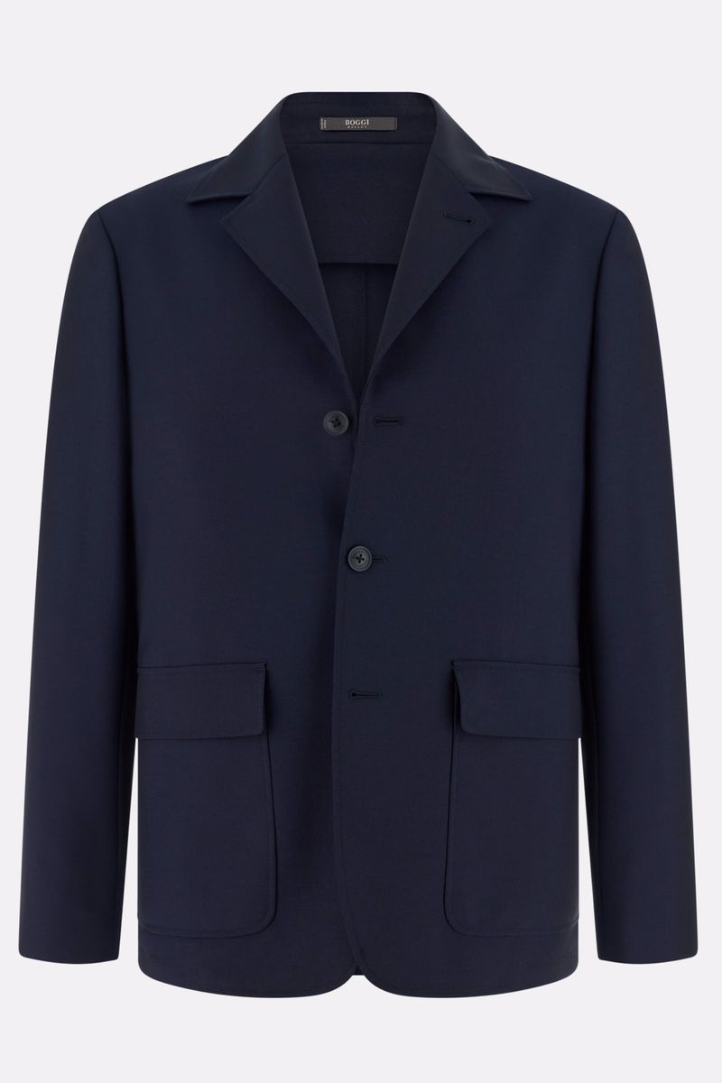 Saco de botonadura simple, corte recto, sin forro, con bolsillos de parche y solapa. El tejido ha sido fabricado en Italia por la histórica empresa Lanificio Vitale Barberis Canonico. La prenda contiene lana y mohair certificados según las principales normas internacionales que garantizan el bienestar animal y la trazabilidad de la materia prima. Los ganaderos no someten a los animales a prácticas dolorosas como el mulesing y son supervisados por organismos independientes para garantizar la protección del suelo, evitando el pastoreo intensivo y promoviendo prácticas de gestión medioambiental.