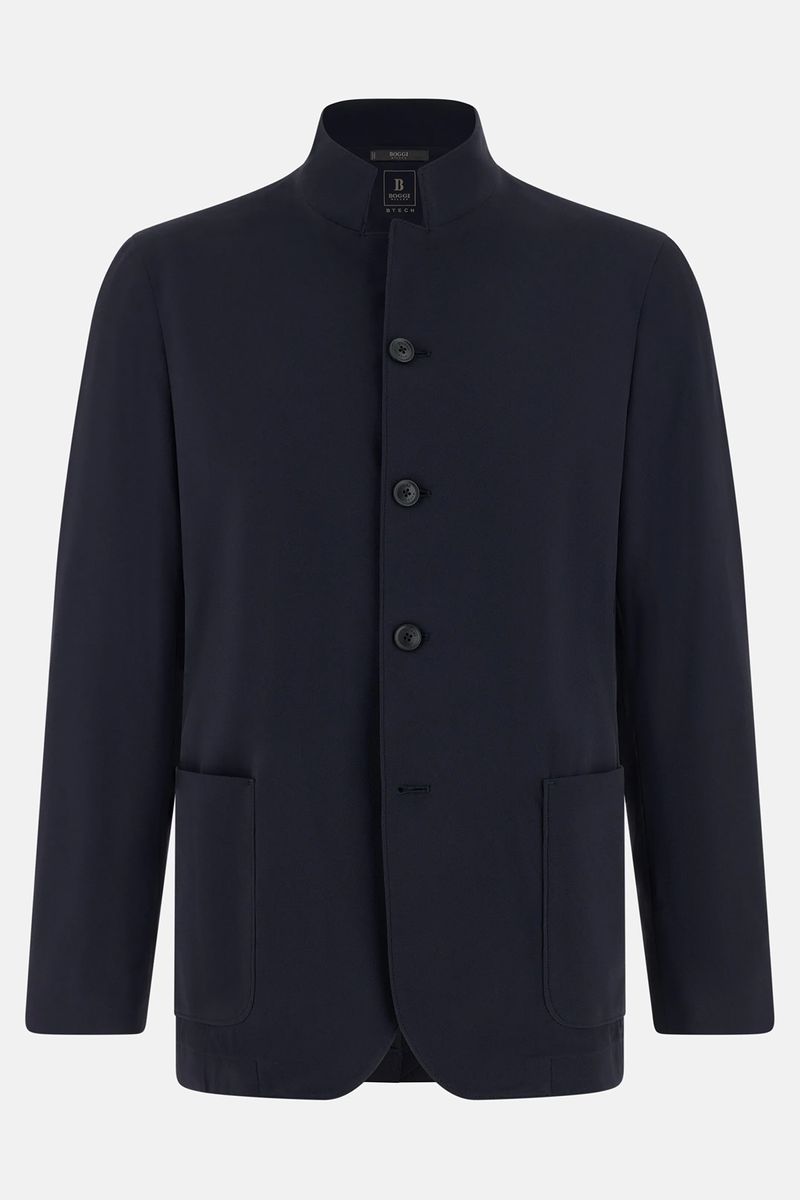 Chaqueta de botonadura simple en nailon elástico de la línea B Tech, caracterizada por sus tejidos de vanguardia. Se trata de una prenda con unas extraordinarias prestaciones: elasticidad, comodidad, transpirabilidad y resistencia a las arrugas. Chaqueta de corte regular con cuello gurú, sin forro y bolsillos de parche.