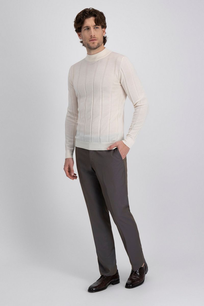 Suéter de lana merino con cuello mock neck y ajuste contemporáneo, ideal para un look casual con sofisticación natural y confort térmico premium.