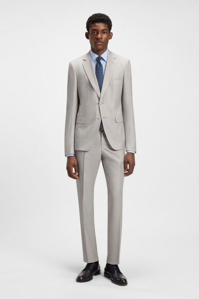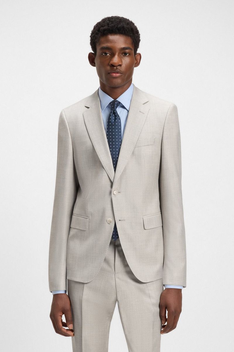 Traje Slim Fit De Lana Virgen Con Microestampado Y Seda